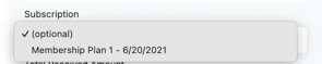 If the donor has one or more subscriptions, a Subscription dropdown will appear.