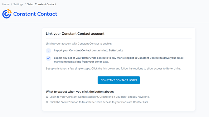- This step is necessary to allow us to read your existing mailing lists and contacts, as well as the ability to export your contacts from BetterUnite to your email marketing platform. So, click the option to Allow BetterUnite access.