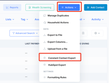- Export donors / contacts from BetterUnite to a email marketing platform mailing list