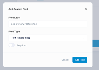 - In the dialog that appears, enter a Field Label (e.g., "Dietary Preference," "T-Shirt Size").