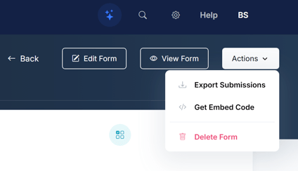 - From the form dashboard: Click the Actions dropdown in the top-right corner and select Get Embed Code.