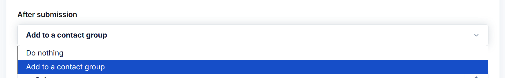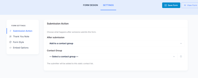 - A Contact Group dropdown will appear below. Select the contact group you'd like submissions to be added to.