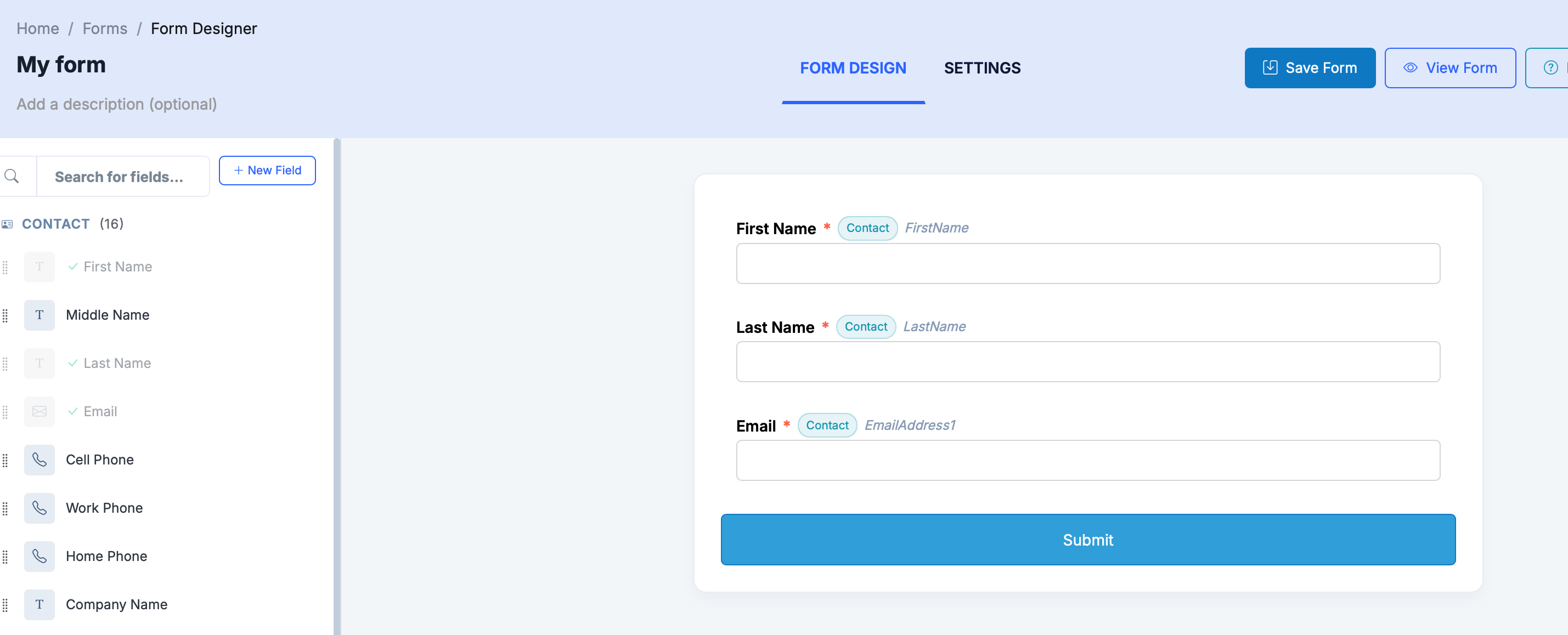 4. Once you've added your fields, click Save Form in the top-right corner.